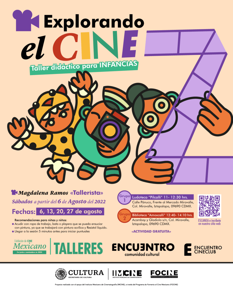 En este taller navegaremos con juegos, creatividad y manualidades en el increíble mundo del cine. Además, podrás reconocer los espacios de la colonia Miravalle disponibles para tu diversión.