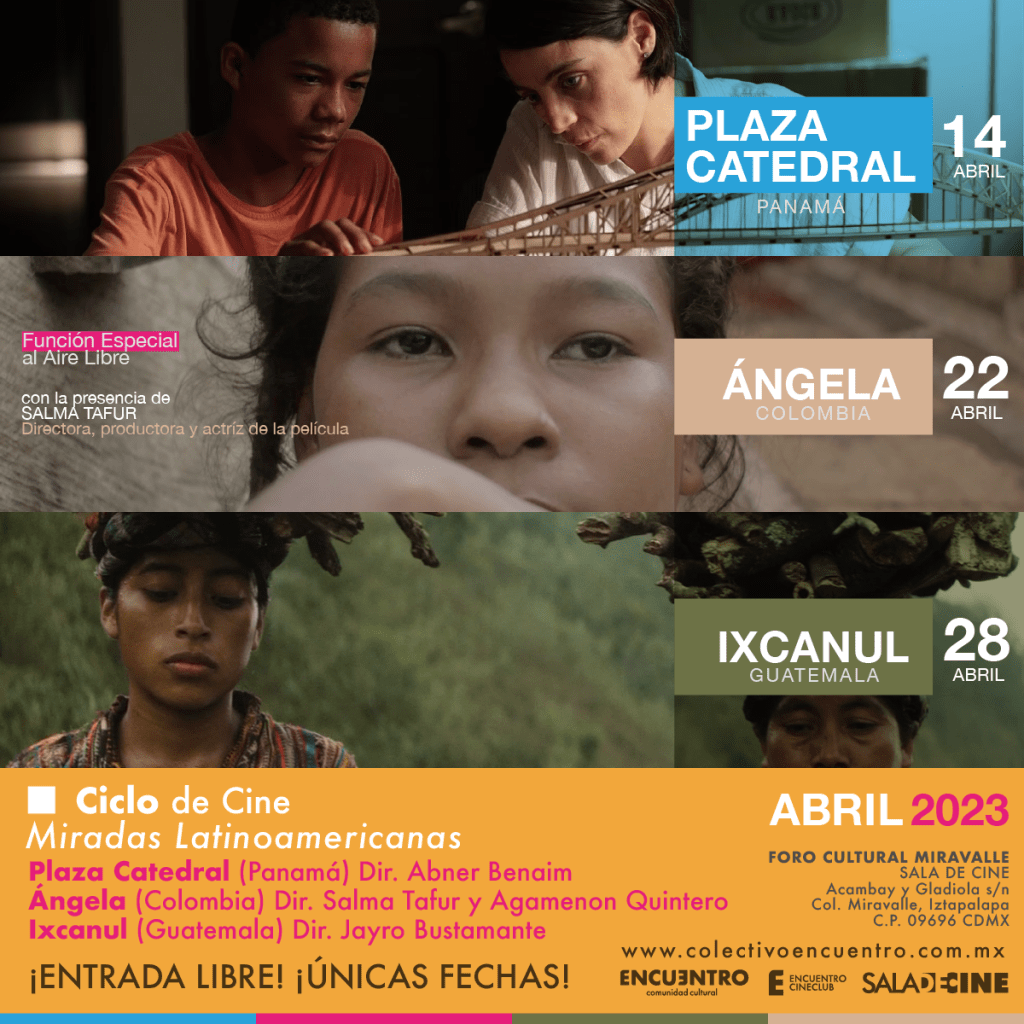 Como parte de la programación continua y gratuita del proyecto ENCUENTRO CINECLUB extendemos la invitación para que nos acompañen a las proyecciones de cine del ciclo: «Miradas Latinoamericanas» compuesto por tres largometrajes realizados en Panamá 🇵🇦 Colombia 🇨🇴 y Guatemala 🇬🇹 respectivamente.
