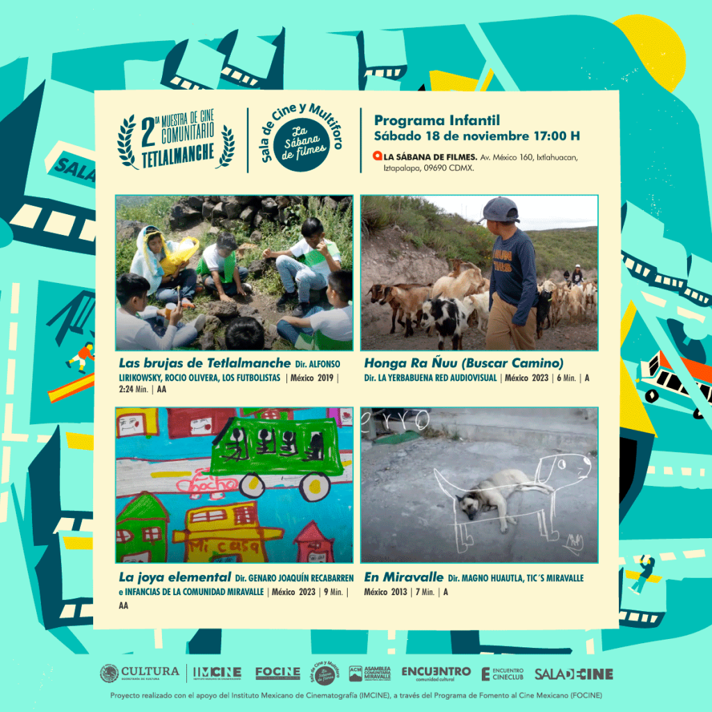 JUEVES 16 de Noviembre / 18:00 H | FORO ARTERIA CINECLUBES | Programa Infantil | Muestra de Cine Comunitario Tetlalmanche