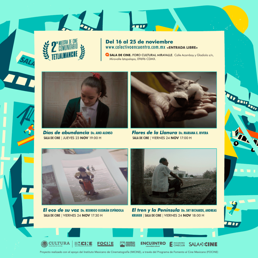 En esta edición del circuito de Exhibición de Cine Mexicano «Cine Gratis en el Barrio» traemos el cierre de la programación con la 2da Muestra de Cine Comunitario Tetlalmanche. En esta cartelera podrás encontrar la información detallada de las películas y las sedes de la muestra.