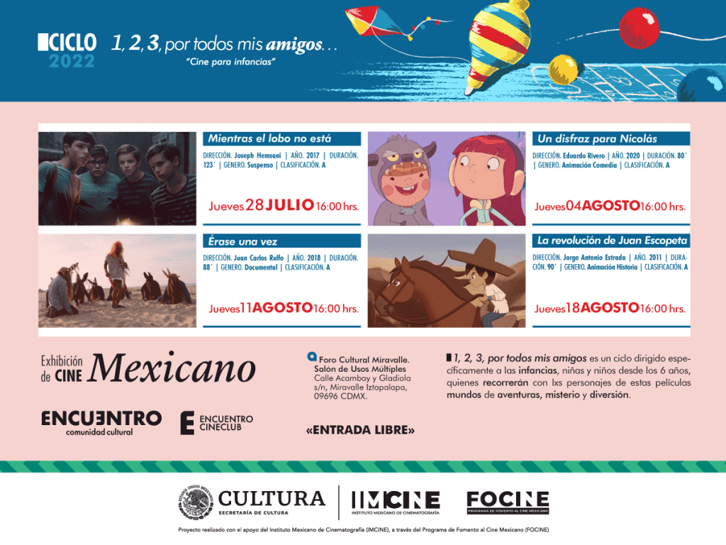 SEDE: SALA DE PROYECCIÓN / SALÓN DE USOS MÚLTIPLES. FORO CULTURAL MIRAVALLE, ACAMBAY Y GLADIOLA S/N, COLONIA MIRAVALLE, IZTAPALAPA. C.P. 09696. CDMX.