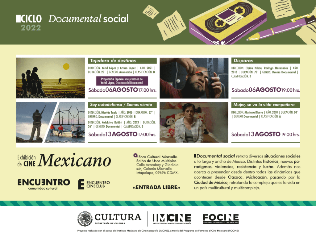Ciclo de documentales que retratan diversas situaciones sociales a lo largo y ancho de México. Distintas historias, nuevos paradigmas, violencias, resistencia y lucha, son las temáticas que abordan estas películas para el programa 1 de este ciclo. Además nos acerca a presenciar desde dentro todas las dinámicas que acontecen desde Oaxaca, Michoacán, pasando por la Ciudad de México, retratando lo compleja que es la vida en un país multicultural y multi complejo.
