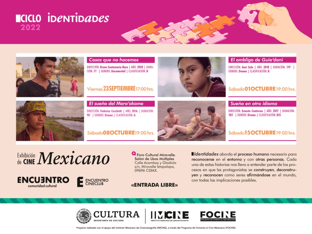 Con este ciclo entenderemos la identidad como un proceso humano necesario para reconocerse en el entorno y con otras personas. Cada una de estas historias nos lleva a entender parte de los procesos en que lxs protagonistas se construyen, deconstruyen y reconocen como seres afirmándose en el mundo, con todas las implicaciones posibles.