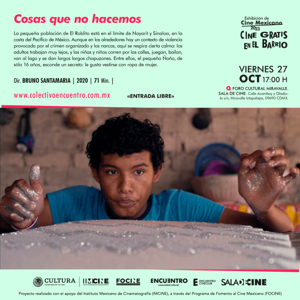 La pequeña población de El Roblito está en el límite de Nayarit y Sinaloa, en la costa del Pacífico de México. Aunque en los alrededores hay un contexto de violencia provocada por el crimen organizado y los narcos, aquí se respira cierta calma: los adultos trabajan muy lejos, y las niñas y niños corren por las calles, juegan, bailan, van al lago y se dan largos largos chapuzones. Entre ellos, el pequeño Ñoño, de sólo 16 años, esconde un secreto: le gusta vestirse con ropa de mujer.