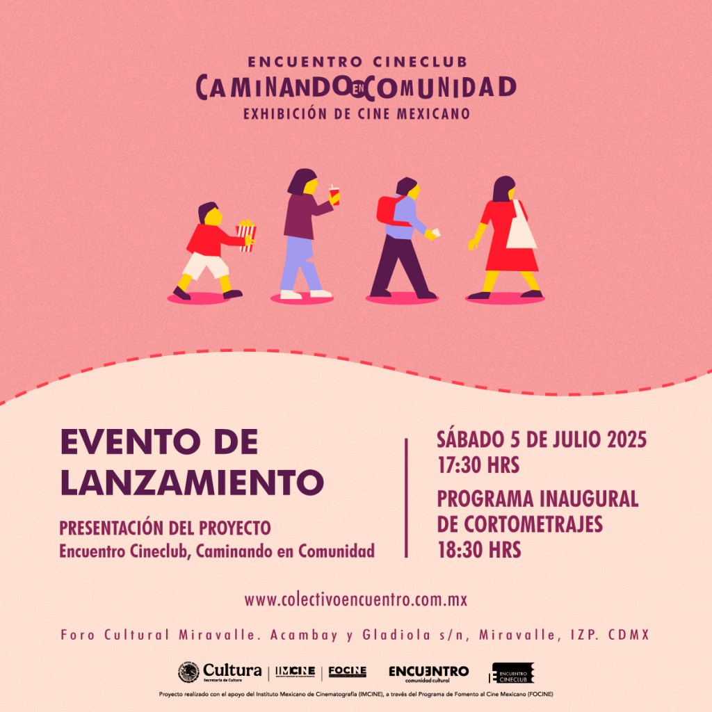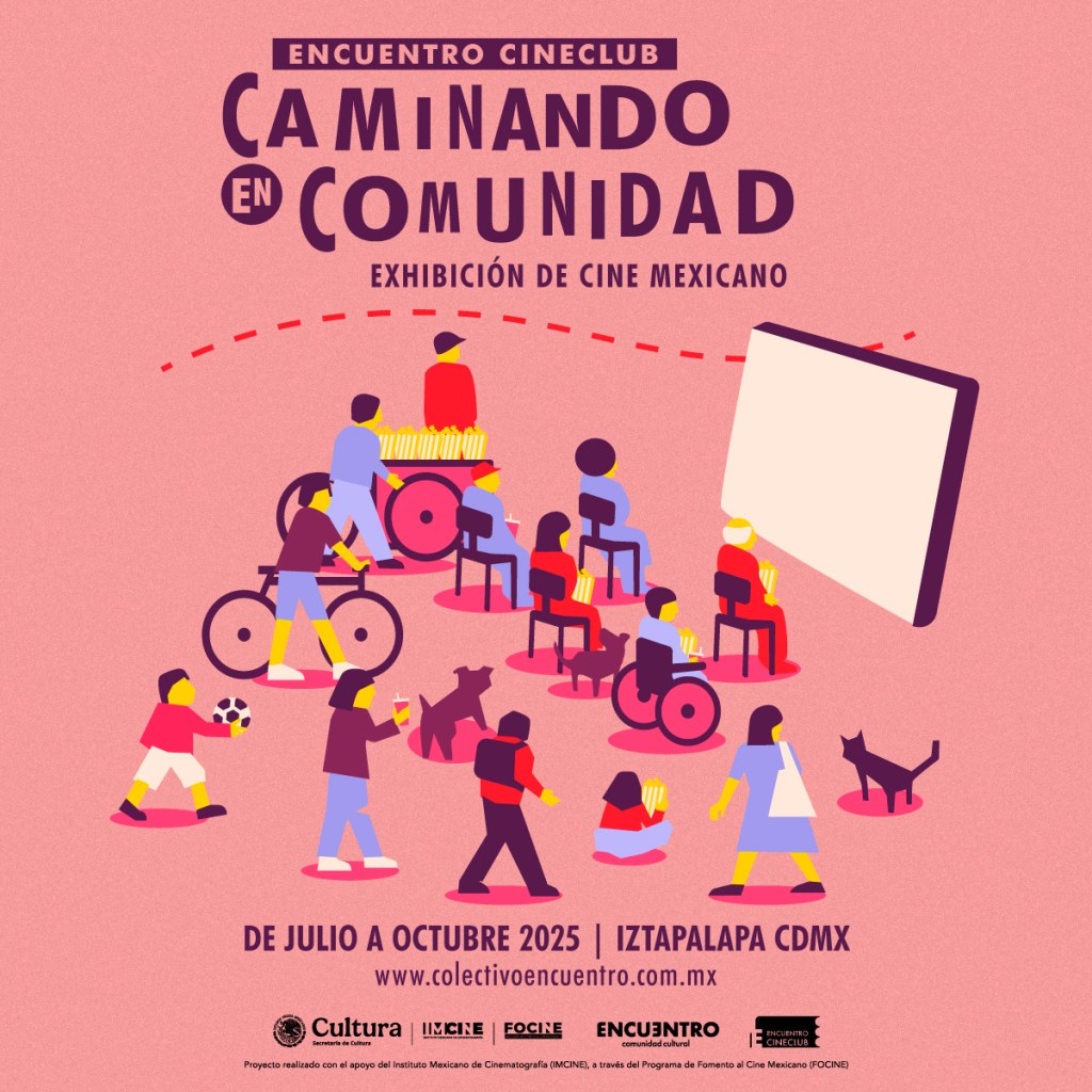 Realizaremos la propuesta: “Caminando en Comunidad”, que consiste en la exhibición de 32 funciones de cine gratuitas, la cual está integrada por cortometrajes y largometrajes, con temáticas y formatos de lo más variados. El proyecto se desarrollará durante los meses de julio a octubre de 2025, y se llevarán a cabo en una sede fija de nuestro proyecto Encuentro Cineclub, en el Foro Cultural Miravalle, además de trazarse una ruta itinerante en distintos espacios públicos de Iztapalapa.